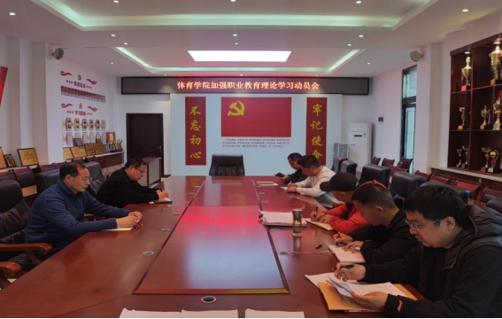 会上,教学科刘楠带领与会人员一起学习了相关职业教育理论。之后,曲扬重点强调:一方面,体育学院全体教师要紧跟职业教育步伐,不断加强职业教育理论学习,在钻研专业技术、提升业务水平、提高教学质量上下苦功;另一方面,各部门、各教研室要组织好本部门的人员,认真学习相关文件精神,做好学习笔记和教研学习活动记录、加强教师们之间的交流。