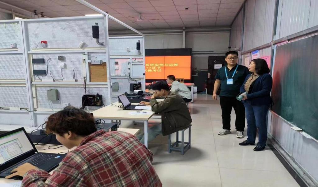 5月14日,智慧安防系统实施与运维职业技能等级证书考试在天鹅湖校区6305、6310、11001举行,共90名学生参与本次考核,考核内容分为理论和实操两部分。考试全程监控录像,严格执行考场考试纪律。本次考试合格的学生将获得由浙江宇视科技有限公司颁发的智慧安防系统实施与运维职业技能等级证书。