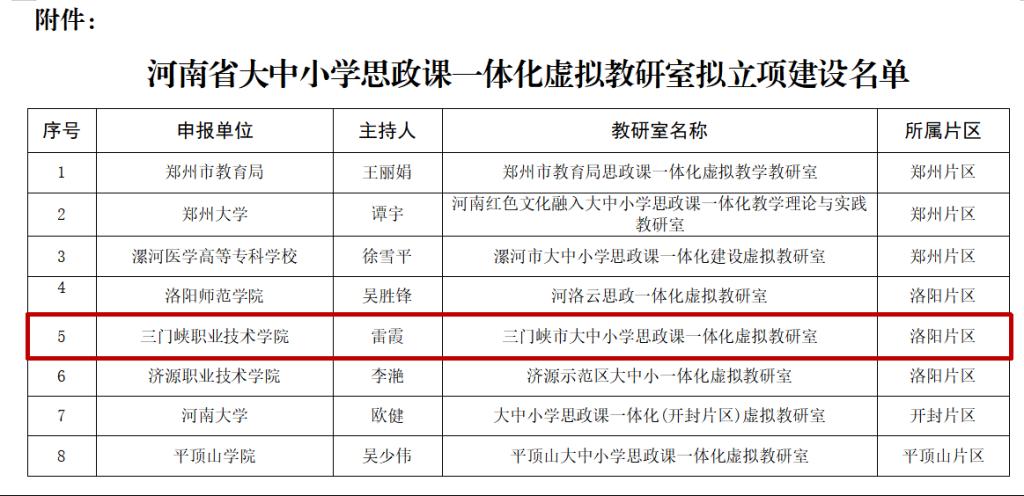 5月31日,球王会平台发布“关于河南省大中小学思政课一体化虚拟教研室拟立项建设名单的公示”,球王会平台雷霞老师主持申报的“三门峡市大中小学思政课一体化虚拟教研室”获批立项。