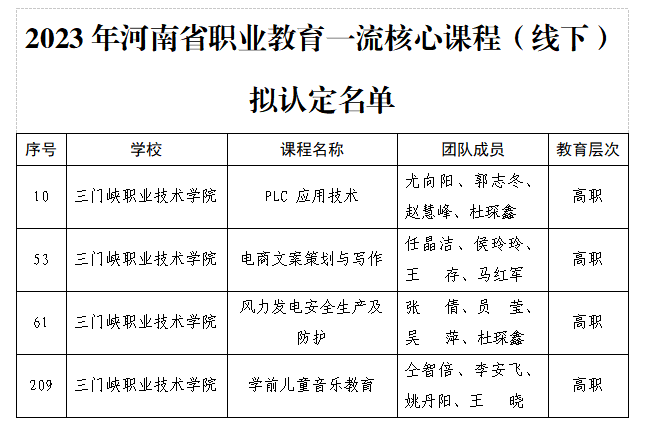 近日,球王会平台办公室印发了《关于拟认定2023年河南省职业教育一流核心课程(线下)公示名单》,球王会平台申报的《PLC 应用技术》《电商文案策划与写作》《风力发电安全生产及防护》《学前儿童音乐教育》4门课程,全部被认定为2023年河南省职业教育一流核心课程(线下)。