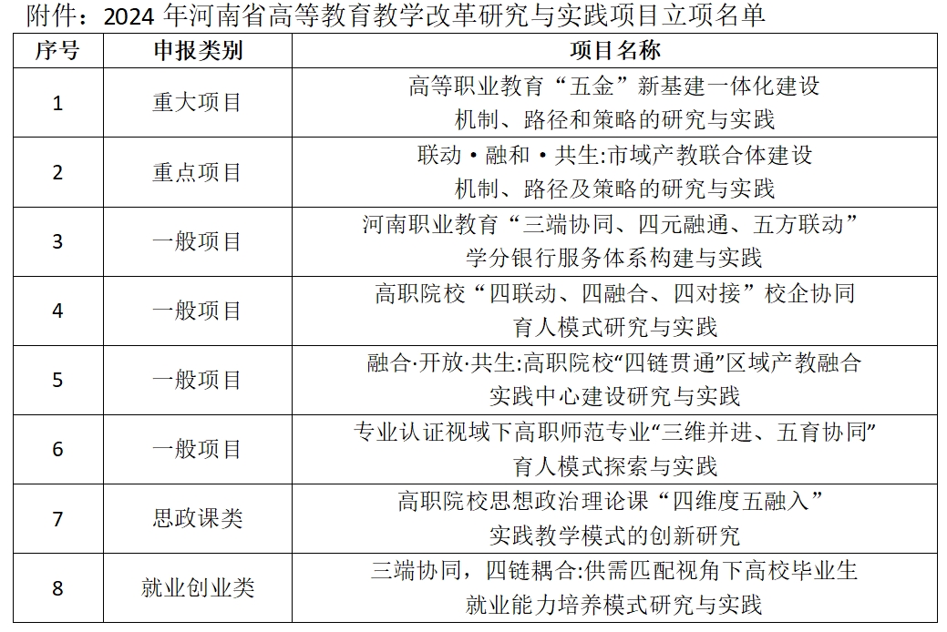 按照《球王会平台办公室关于开展2024年河南省高等教育教学改革研究与实践项目立项工作的通知》(教高〔2024〕24号)要求,经个人申报,院部审核推荐,校外专家多次评审,现将推荐名单予以公示(见附件)。