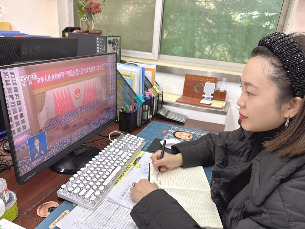 目标已定、任务已明,关键之年当有关键之为。作为一名高校教育工作者,我深感使命无上光荣,更知责任千钧之重。我将认真学习贯彻落实全国两会精神,锤炼对党忠诚、信念坚定的政治品格,带头学懂弄通做实习近平新时代中国特色社会主义思想,深刻领悟“两个确立”的决定性意义,当好践行“两个维护”的排头兵,以“时代新人铸魂工程”为统领,践行“以学生为中心”的教育理念,发扬历史主动精神,积极弘扬教育家精神,牢记为党育人、为国育才的初心使命,落实立德树人根本任务,贯彻落实教育强国、科技强国、人才强国战略,将思政课纳入课堂,勤学习,练内功,积极培育德智体美劳全面发展的时代新人,为学校加快建成特色高水平大学贡献青春力量!