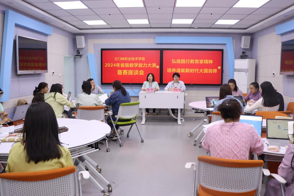 5月6日下午,我校在天鹅湖校区智慧教室召开2024年省级教学能力大赛备赛座谈会。教务处刘丰年,各备赛团队负责人和队员参加了会议,会议由教务处李安飞主持。