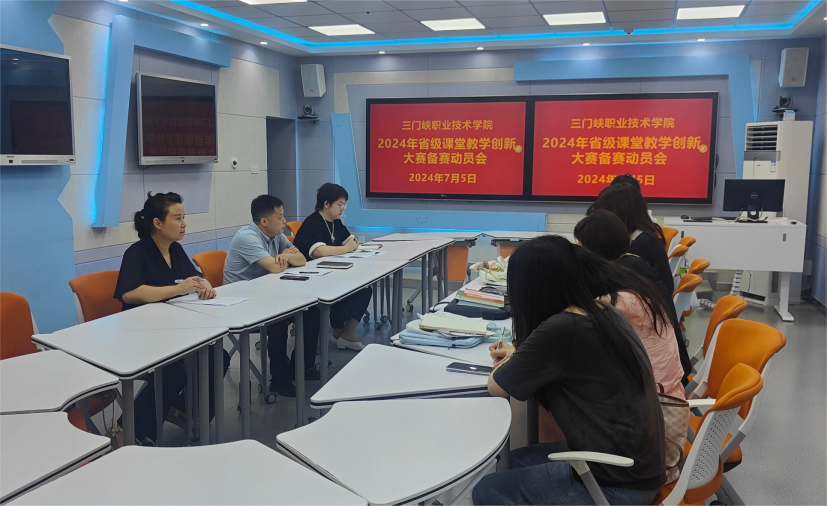 7月5日上午,我校在天鹅湖校区智慧教室组织召开了2024年省级课堂教学创新大赛动员会。教务处刘丰年、体育学院张词侠老师和来自各院部推荐的10位备赛教师参加了会议。会议由教务处李安飞主持。