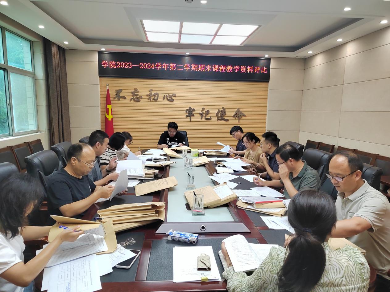 为落实学院“教学质量提升年专项行动”,进一步规范课程教学资料,7月16日下午,教务处组织开展了2023-2024学年第二学期期末课程教学资料评比活动。由各院部代表组成的专家评委对11个院部推选的22门课程教学资料进行了评比。