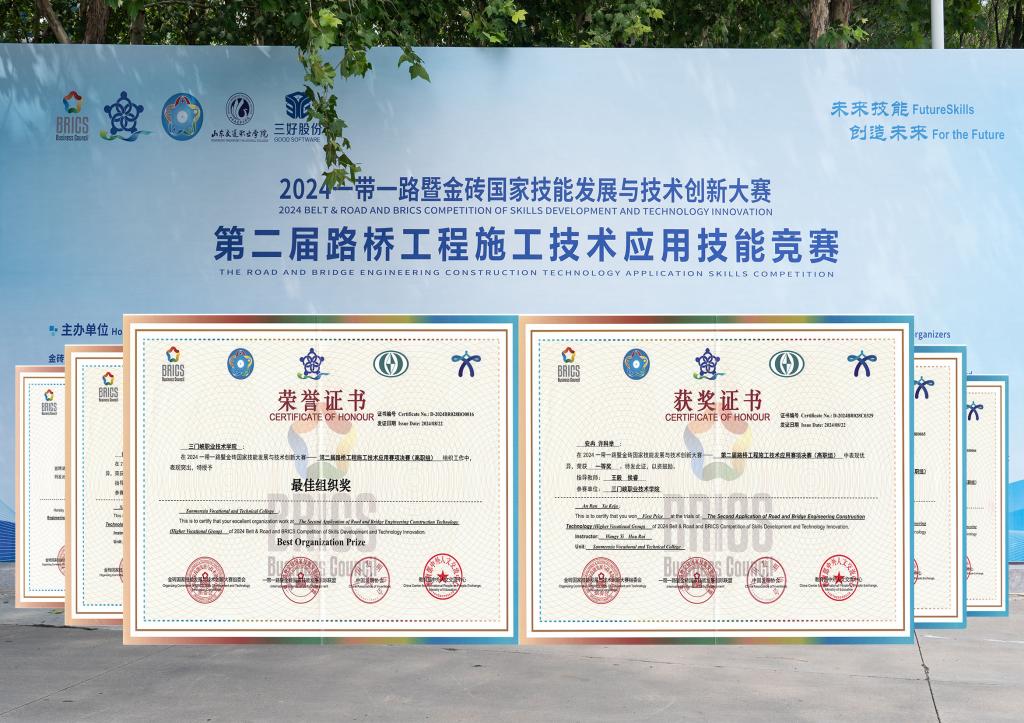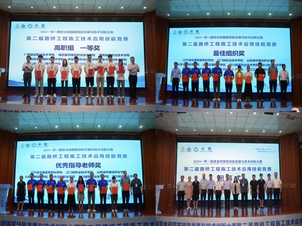 2024年8月20-22日,2024一带一路暨金砖国家技能发展与技术创新大赛第二届路桥工程施工技术应用赛项全国总决赛在山东交通职业学院隆重举行。本次决赛分为中职组、高职组、本科组、国际组,历经前期覆盖全国院校的校园赛,到665所院校参与的区域选拔赛的激烈角逐,共决出来自全国28个省(区)、282所院校的282支队伍参加决赛。球王会平台参赛团队在师生共同努力下,一路披荆斩棘斩,终于获得全国总决赛高职组一等奖,同时球王会平台荣获大赛“最佳组织奖”。