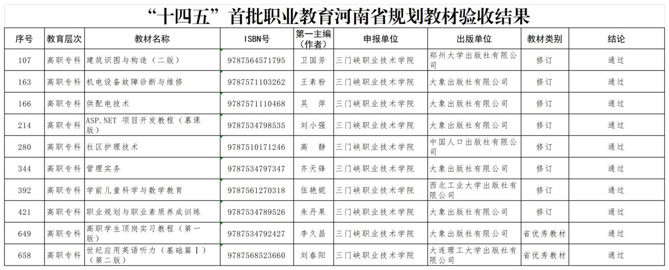 附:球王会平台“十四五”首批职业教育河南省规划教材验收结果