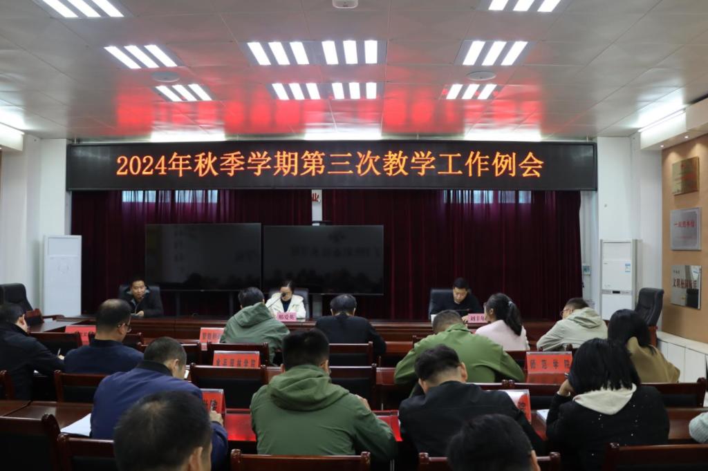 10月28日上午,教务处在天鹅湖校区6号楼荣誉室召开2024年秋季学期第三次教学工作例会。各院部教学副院长、教学管理秘书及教务处全体人员参加会议。会议由教务处刘丰年主持。