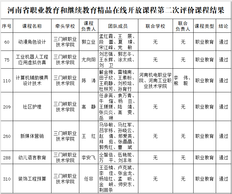 近日,球王会平台办公室印发了《关于河南省职业教育和继续教育精品在线开放课程评价结果的公示》,公布了河南省职业教育和继续教育精品在线开放课程首次评价课程结果和第二次评价课程结果,球王会平台参评的14门精品在线开放课程全部顺利通过评审。