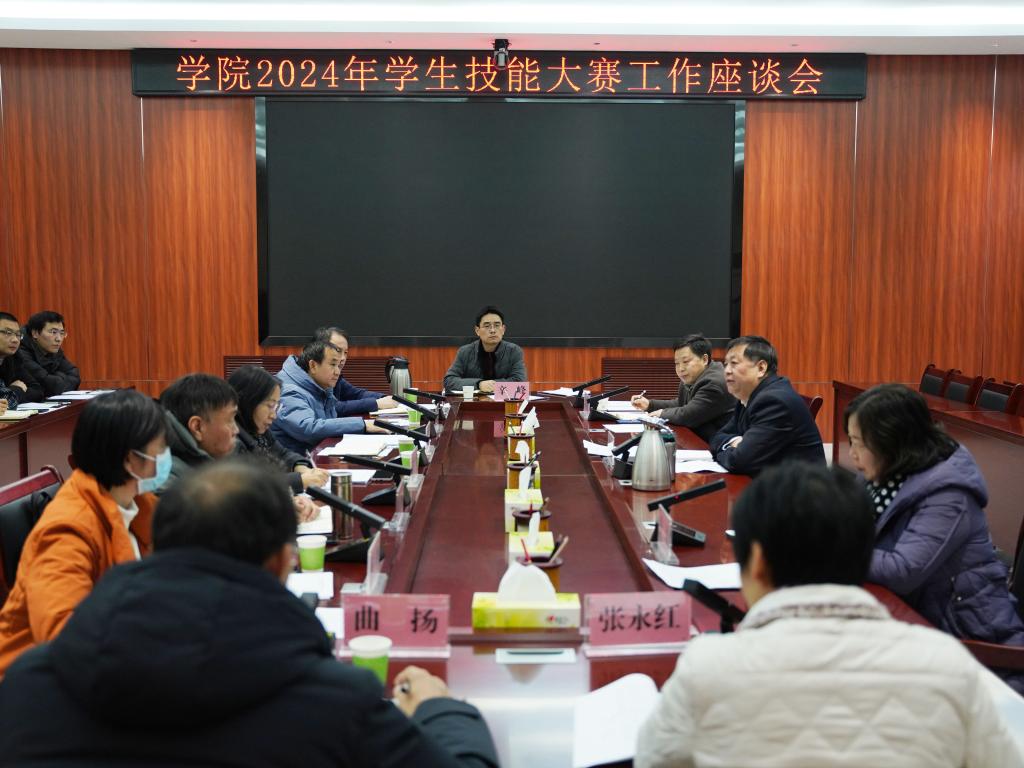 为及时有效总结近期学生技能竞赛的成果、经验,进一步推动学院教育教学与技能竞赛的深度融合,1月14日下午,学院在天鹅湖校区1107会议室召开了2024年学生技能大赛工作座谈会。党委副书记、院长颉潭成,各部门负责人,各院部党政负责人、学生竞赛联络员,各赛项指导老师及教务处相关工作人员参加了会议。会议由教务处刘丰年主持。