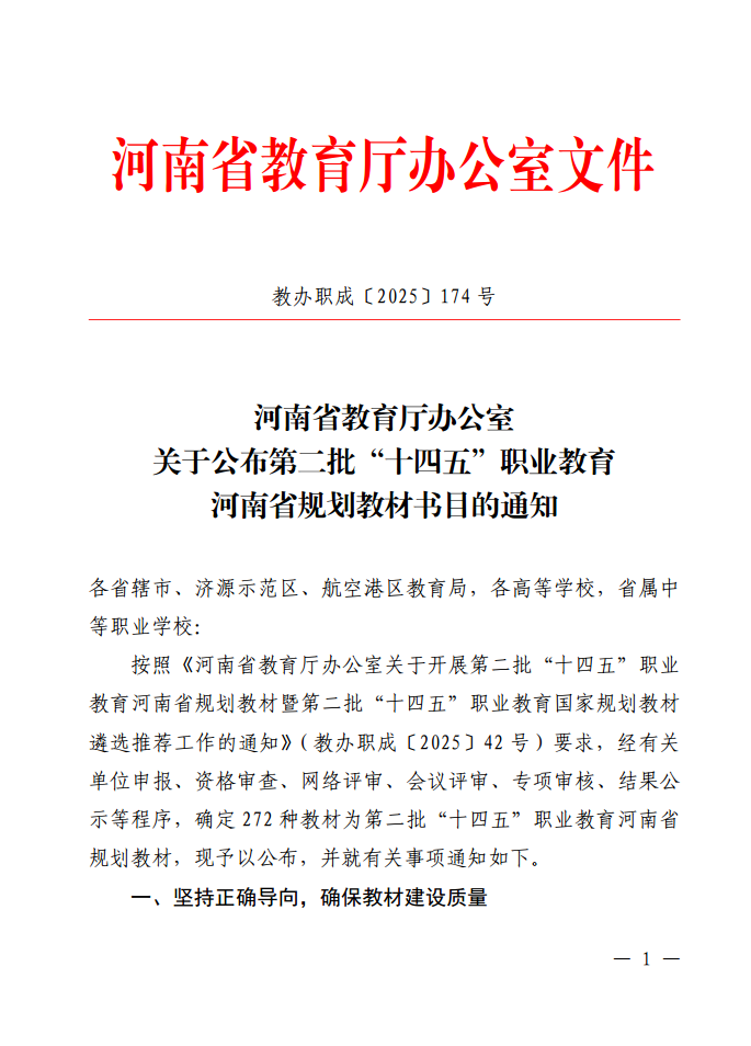 近日,球王会平台公布第二批“十四五”职业教育河南省规划教材入选名单,学院4部教材获批认定,并被获推第二批“十四五”职业教育国家规划教材。这是学院在教材建设领域取得的又一重要成果,充分体现了学院在深化教育教学改革、提升人才培养质量方面的新成效。