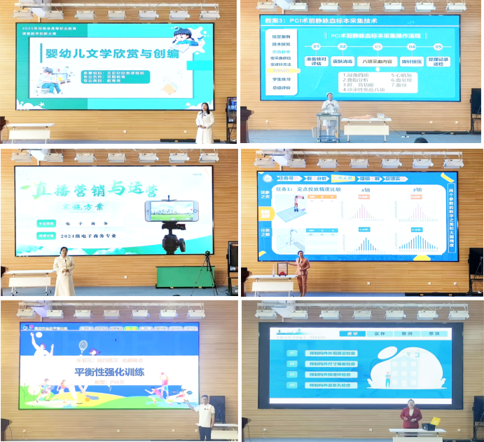 随后,来自师范学院、经济管理学院、医护学院、建筑工程学院、体育学院的6位课堂教学创新大赛参赛教师依次开展说课与无生教学展示。他们紧扣竞赛评价维度,优化教学目标、重构教学内容、创新课堂组织方式,在无生授课中融入任务驱动、成果比拼等竞赛机制,充分体现“以赛促学”理念。整场展示聚焦“赛教融合”核心,既体现了竞赛对教学的引领与赋能作用,又展现了教学实践对竞赛成果的转化与落地,为参训教师提供了可借鉴、可复制的“以赛赋能教学、以教学反哺竞赛”的整体范本。