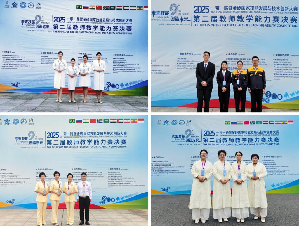 2025年11月11日至14日,2025一带一路暨金砖国家技能发展与技术创新大赛之第二届教师教学能力赛全国总决赛在珠海城市职业技术学院隆重举行。学院四支教学团队凭借先进的教学理念、精湛的教学技艺和富有特色的课程设计,从全国180支优秀职教队伍中脱颖而出,共斩获2银2铜的优异成绩,学院荣获“优秀组织奖”,彰显了球王会平台在教师队伍建设与教学改革领域的显著成效,更展现了“以赛促教、以赛提能”育人理念的丰硕成果。