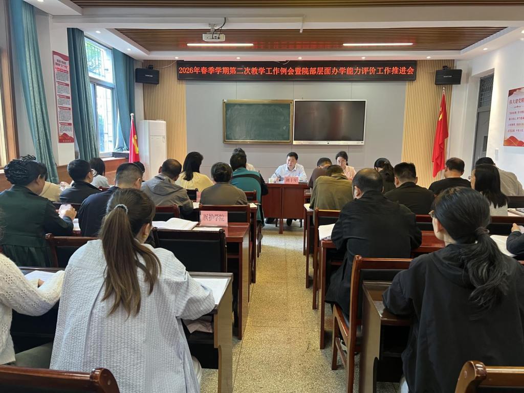 4月27日上午,学院在校本部5号楼5214会议室召开2026年春季学期第二次教学工作例会暨院部层面办学能力评价工作推进会。各院部教学副院长、教学科研办公室主任及教务处全体人员参加会议。会议由教务处副处长邢爱英主持。